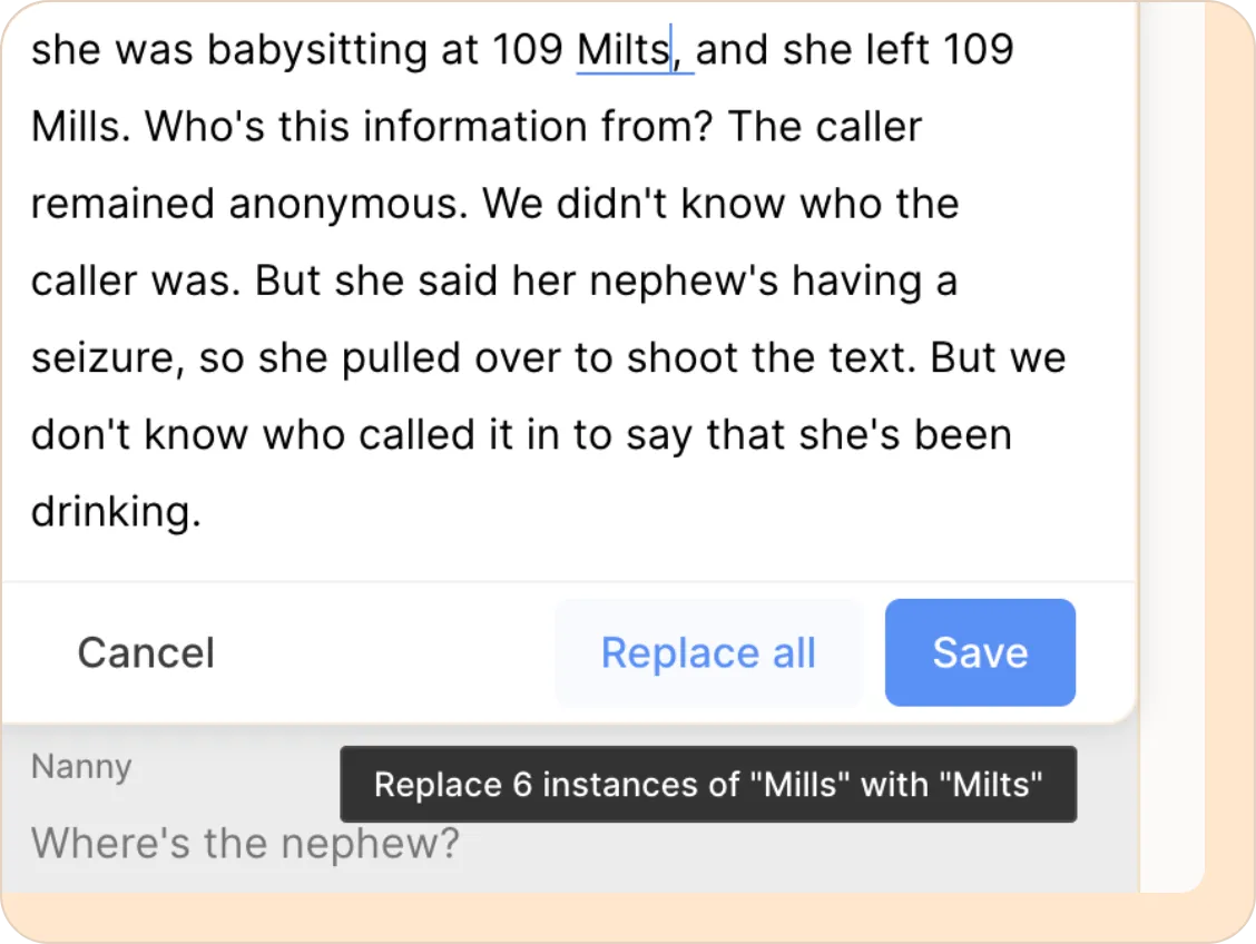 When a word appears multiple times and needs correction, you can use the Replace all feature to fix every instance of the word in one go.