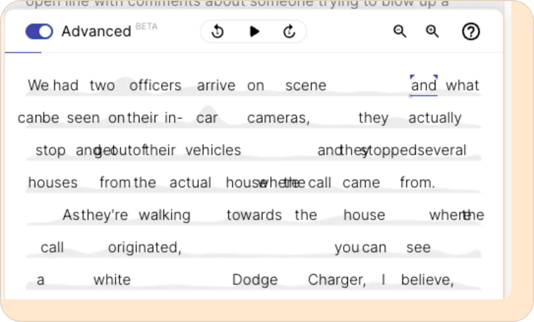 If the transcript is incorrectly aligned with the audio of the recording - which sometimes happens when there’s lots of crosstalk or background noise, or long periods of silence - you can fix it using the Advanced correction mode.