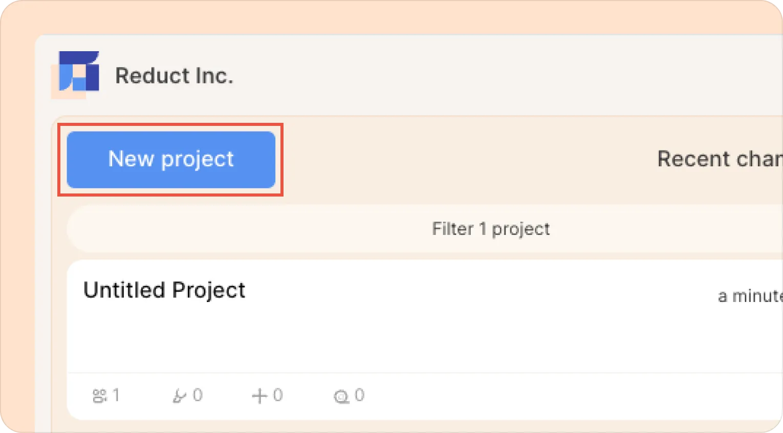 Work in Reduct is organized into projects.